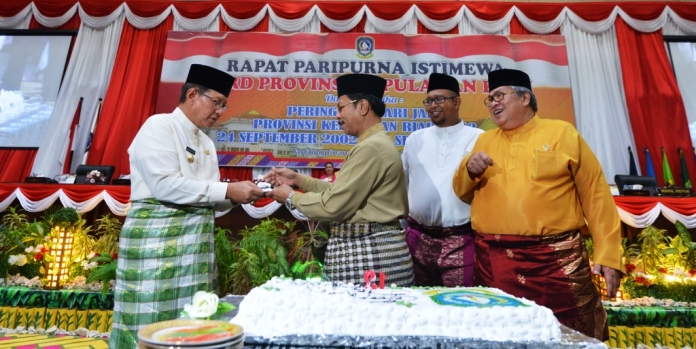 Setelah apel, sebagai acara puncak dilakukan sidang paripurna istimewa di kantor DPRD Kepulauan Riau di Dompak.
