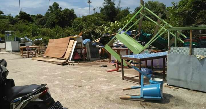 “Angin puting beliung terjadi saat hujan lebat. Hanya durasi 3 menit, habis semua berantakan, baik itu tenda dan bangunan Astaka,” ucap salah satu personil RAPI Natuna, Miskadi.