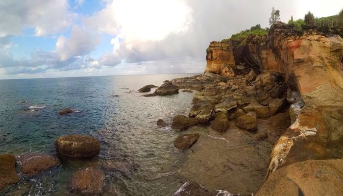 Setelah melewati berbagai patahan, hamparan batuan kapur bercampur dengan tanah dan pasir membentuk kawah-kawah kecil menjadi tumpuan kaki untuk melangkah lebih jauh lagi melihat Batuan Sedimen Fluvial yang berusia lebih kurang 38-5,1 juta tahun lalu. Bongkahan batu di bibir pantai disertai hempasan ombak disaat air laut surut semakin terlihat jelas.