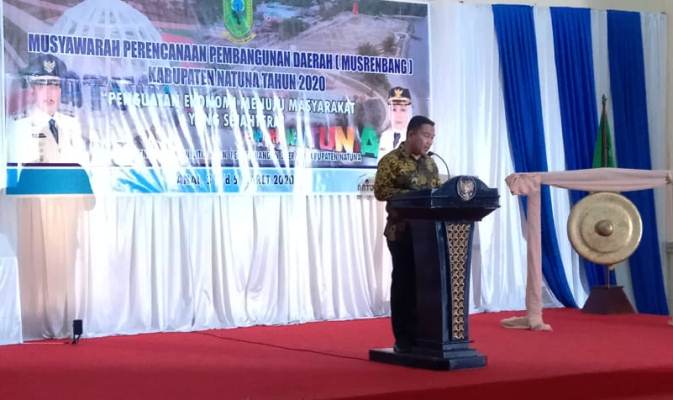 Natuna, (MetroKepri) – Bupati Natuna, Abdul Hamid Rizal membuka Musyawarah Perencanaan Pembangunan Daerah (Musrenbang) Kabupaten Natuna tahun 2020 di Gedung Sri Serindit, Jalan Yos Sudarso, Selasa 03 Maret 2020 malam.