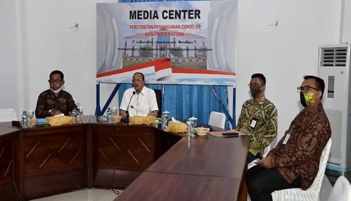 Natuna, (MetroKepri) – Bupati Natuna Abdul Hamid Rizal menghadiri acara Vidcon Penandatanganan Kontrak Serta Dokumen Konstruksi Pembangunan Pos Lintas Batas Negara (PLBN) Terpadu Serasan, di Gedung Daerah Kabupaten Natuna, Kamis (5/11/2020) siang.