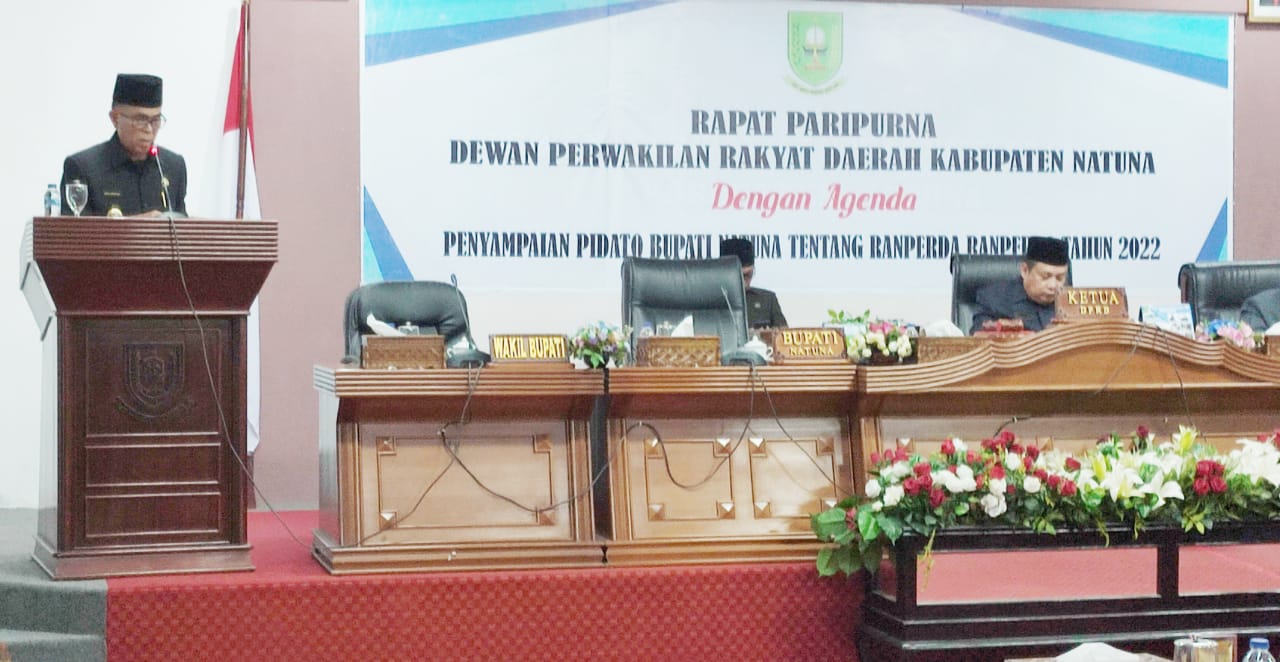 Natuna, MetroKepri – Bupati Natuna, Wan Siswandi, sampaikan 10 usulan rancangan peraturan daerah (Ranperda) tahun 2022 pada rapat paripurna DPRD kabupaten Natuna, Senin Malam 14 Maret 2022.