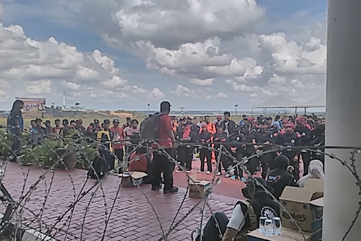 “Hari ini, mudah – mudahan selesai, artinya kita pulang bukan tidak membawa apa – apa. Bila perlu kita nginap disini,” teriak Suprapto dalam orasinya. (ALPIAN TANJUNG)