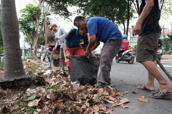 Bersama tim kebersihan PUPR, Hendri tanpa rasa segan melaksanakan aksi bersih-bersih tersebut.