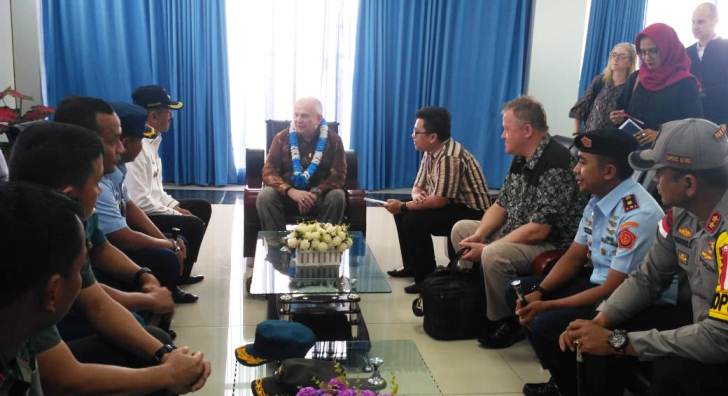 Turun dari pesawat rombongan Kedubes, sempat berbincang dengan Bupati Natuna bersama sejumlah pejabat di Vip Room Bandara Sipil Lanud RSA.