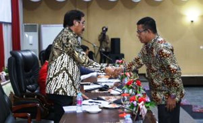 Ketua DPRD Kepri, Jumaga Nadeak Memimpin Rapat Paripurna dan Didampingi Wakil Ketua DPRD Kepri, Husnizar Hood Serta Gubernur Kepri, Nurdin Basirun