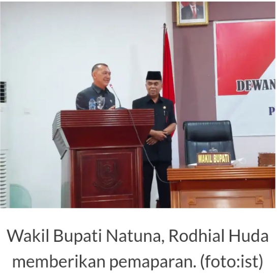 Wakil Bupati Natuna, Rodhial Huda didampingi Bupati Wan Siswandi menyampaikan pidato realisasi pendapatan tahun anggaran 2021 sebesar Rp 968.639.262.049,31 atau 81,9 persen dari target yang ditetapkan sebesar Rp 1.182.675.738.475,00.