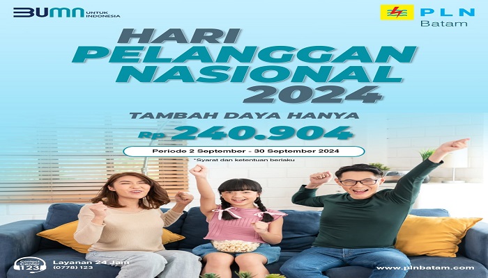“Hari Pelanggan Nasional merupakan momen tepat bagi PLN Batam meningkatkan pelayanan dan kepuasan pelanggan. Salah satunya melalui promo keringanan biaya penyambungan tambah daya untuk bisa memenuhi kebutuhan listrik masyarakat dengan harga lebih ringan. Semoga diskon spesial ini dapat dimanfaatkan secara maksimal,” ujar Zulhamdi, Senin (02/09/2024).