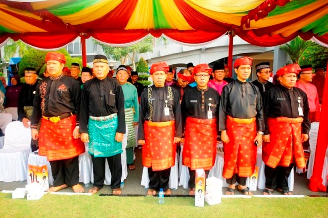 Malam tasyakuran yang diawali dengan pemasangan tanjak dan pemotongan tumpeng oleh Wali Kota Tanjungpinang, H. Lis Darmansyah, SH yang kemudian diberikan kepada Penjabat Gubernur Kepri, Ir. Agung Mulyana, M. Sc.