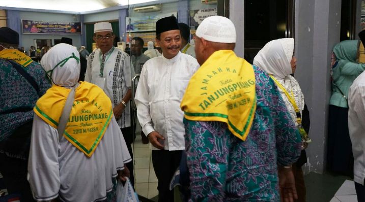 Penjabat Walikota Tanjungpinang, Drs. Raja Ariza, MM dalam kesempatan ini juga menyampaikan ucapan selamat datang kembali ke Tanjungpinang kepada seluruh jamaah haji.