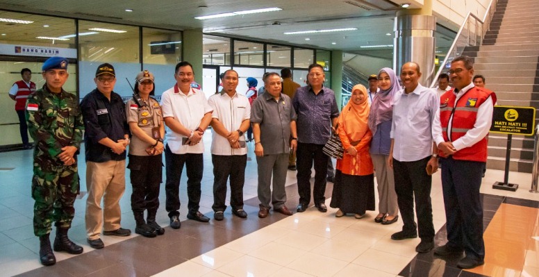 Sambil meninjau, rombongan terlihat berdiskusi dan berdialog dengan Direktur Badan Usaha Bandar Udara Suwarso secara langsung.