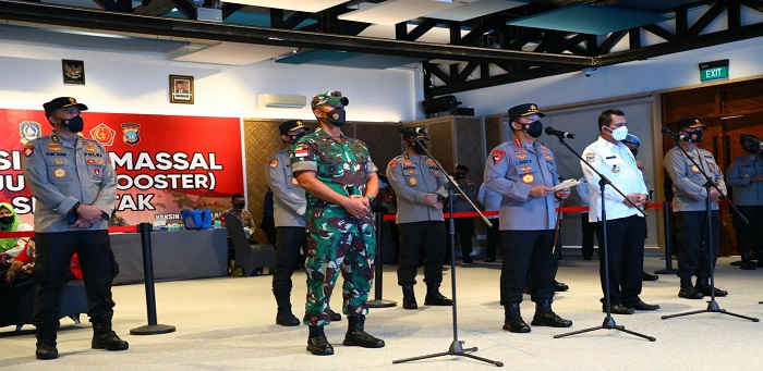 “Alhamdulillah laporan hari ini yang melaksanakan vaksin sudah masuk di dosis 3 (booster), tentunya ini merupakan prestasi. Untuk itu apresiasi sebesar-besarnya kepada Gubernur, Kapolda, Danrem dan seluruh stakeholder atas pencapaian ini,” imbuh Jenderal Listyo.