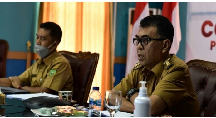 Bupati Natuna Wan Siswandi Saat Mengikuti Rakor Secara Virtual
