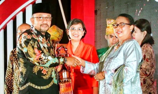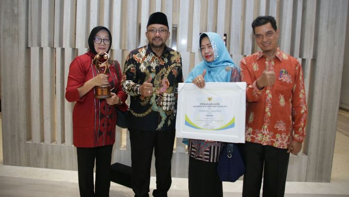 Penghargaan tersebut langsung diserahkan oleh Menteri Pemberdayaan Perempuan dan Perlindungan Anak Yohana Susana Yanbise kepada Wali Kota Tanjungpinang H. Lis Darmansyah di Sweesbel Hotel, Pekanbaru, Sabtu (22/7/2017).