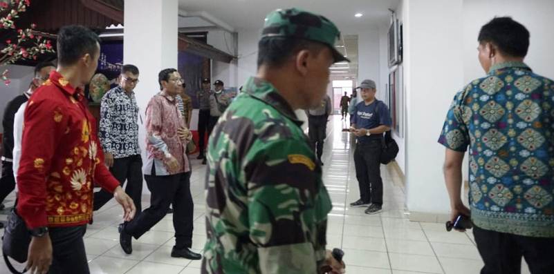 Mahfud MD didampingi Menteri Kesehatan Dr Terawan dan Kepala BNPB Doni Munardo, langsung bertemu dengan Bupati Natuna Abdul Hamid Rizal dan melakukan konferensi pers.