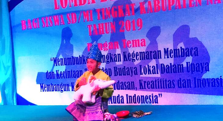 Pada kesempatan tersebut, Yoga Febriyanto pemenang lomba bercerita tingkat kabupaten dan provinsi tahun 2017 berkesempatan untuk bercerita dengan judul ‘Hikayat Dewa Mendu’ dengan unik dan menarik. (Manalu)