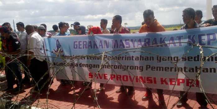 Tanjungpinang, (MK) – Puluhan masa yang tergabung dalam tokoh masyarakat khusus Tanjungpinang dan Bintan menggelar aksi unjukrasa di depan Kantor Gubernur Kepri, Dompak Tanjungpinang, Senin (25/4).