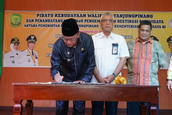 Wali Kota Tanjungpinang, Syahrul S.Pd saat tandatangan MoU bersama Kementerian Pariwisata