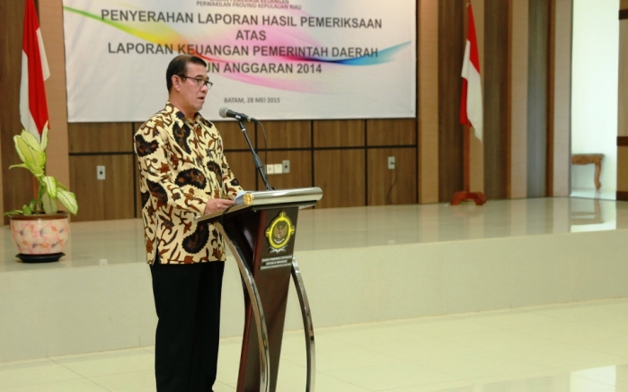 Penyerahan tersebut langsung oleh Kepala Perwakilan Badan Pemeriksa Keuangan (BPK) Perwakilan Kepri, Isman Rudy di Auditorium BPK Perwakilan Kepri, Kamis (28/5) di Batam.