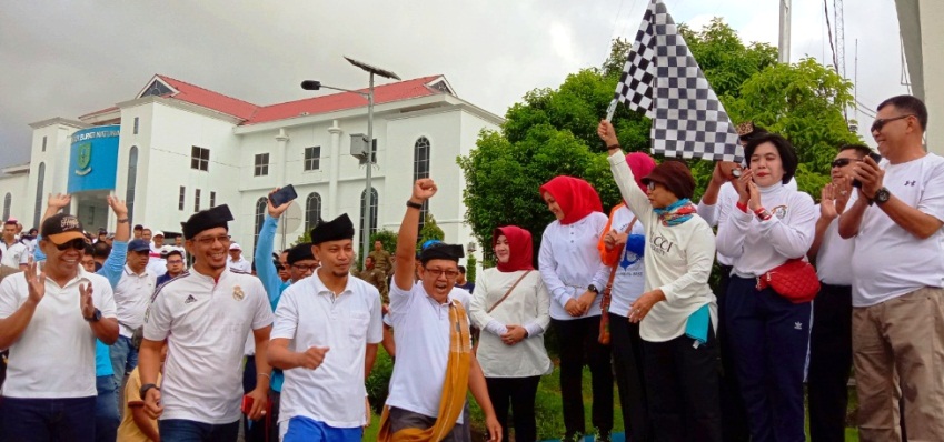 Peserta jalan santai keluarga dilepas langsung oleh Ketua PKK Natuna Nurhayati Hamid Rizal dan didampingi oleh Sekda Natuna Wan Siswandi dan Pimpinan FKPD.