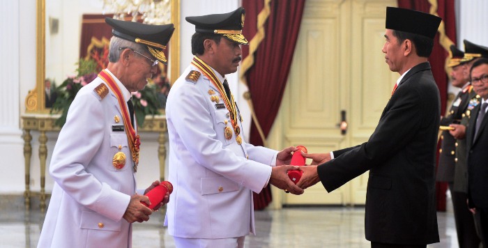 Gallery Foto, (MK) – Pasangan calon Gubernur dan Wakil Gubernur Provinsi Kepulauan Riau terpilih pada Pilkada Desember 2015 lalu, H. Muhammad Sani dan Nurdin Basirun resmi dilantik oleh Presiden Republik Indonesia Joko Widodo di Istana Negara Jakarta, Jumat (12/2).