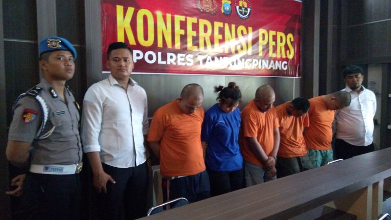 Kelima pelaku dijaga ketat oleh anggota Satreskrim Polres Tanjungpinang