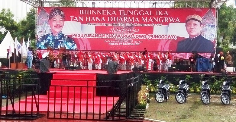 Batam, (MK) – Ribuan masyarakat hadiri acara Halal Bihalal yang diadakan Paguyuban Among Wargo Jowo (Punggowo) di lapangan alun – alun Engku Putri Batam Centre, Minggu (27/8/2017).