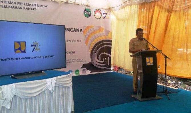 “Dengan tema ‘Bakti PUPR Bangun Daya Saing Bangsa’ mari kita tingkatkan kebersihan dengan pengelolaan sampah rumah tangga dari hulu ke hilir dan melaksanakan penghijauan di beberapa kawasan pemukiman,” paparnya, Senin (27/11/2017).