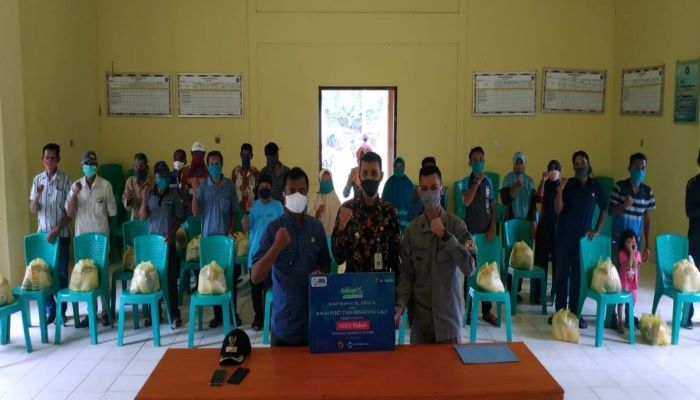 Bantuan yang diberikan sebanyak seribu paket sembako ini untuk membantu masyarakat nelayan di masa wabah covid-19.