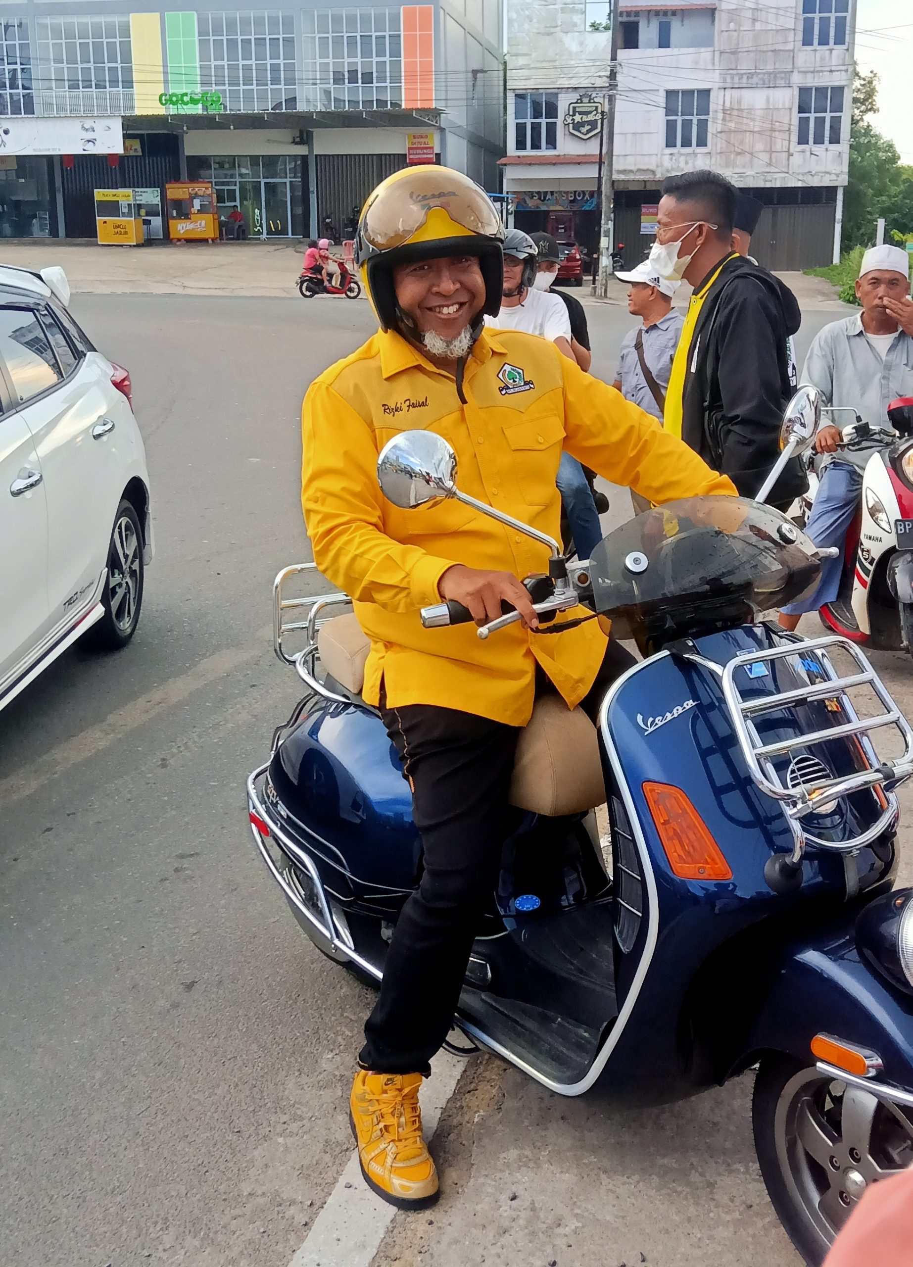 Ternyata, pria itu adalah Sekretaris DPD I Partai Golkar Provinsi Kepulauan Riau, Rizki Faisal. Kehadiran Anggota DPRD Kepri ini juga, diikuti oleh komunitas Vespa.