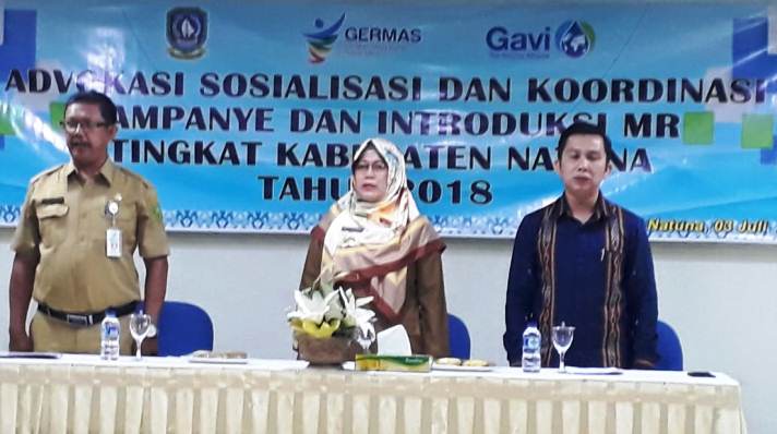 Kegiatan immunisasi MR di Kabupaten Natuna pada Agustus 2018 akan dilaksanakan di seluruh sekolah yang terdiri dari sekolah SD/ MI/ Sederajat dan SMP/ MTS/ Sederajat. Bulan September 2018 immunisasi MR akan dilakukan di Posyandu – Posyandu, Polindes, Poskesdes, dan berbagai fasilitas kesehatan masyarakat dengan sasaran immunisasi bagi bayi usia 9 bulan sampai dengan anak usia 6 tahun.