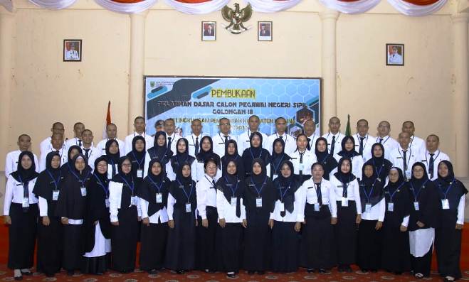 “Pendidikan dan pelatihan merupakan suatu rangkaian kegiatan yang wajib bagi Calon Pegawai Negeri Sipil (CPNS) sebagai persyaratan pengangkatan Pegawai Negeri Sipil (PNS). Pelatihan dasar yang dilaksanakan sekarang ini merupakan dasar dari pembangun karakter PNS yang mampu berprilaku, berintegritas dan beretika demi mewujudkan pelayanan prima kepada masyarakat kelak,” katanya.